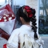 左右の毛束に沿って、カラフルな組紐やリボンを巻き付けたり、ドライフラワーや小さな飾りの連なりをつけたりして、和の要素を強調します。